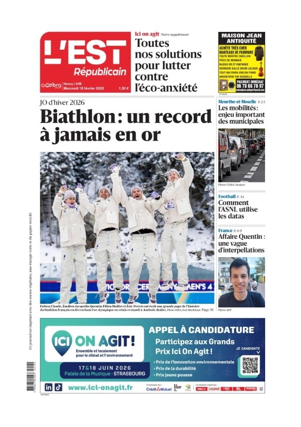 Titre: L'Est Républicain ( 2 éditions ) du Jeudi 19 Février 2026