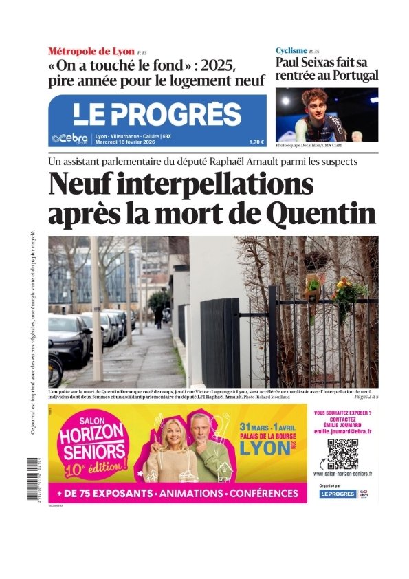 Titre: Le Progrès ( Lyon Villeurbanne Caluire + Suppléments ) Du Mercredi 18 Février 2026