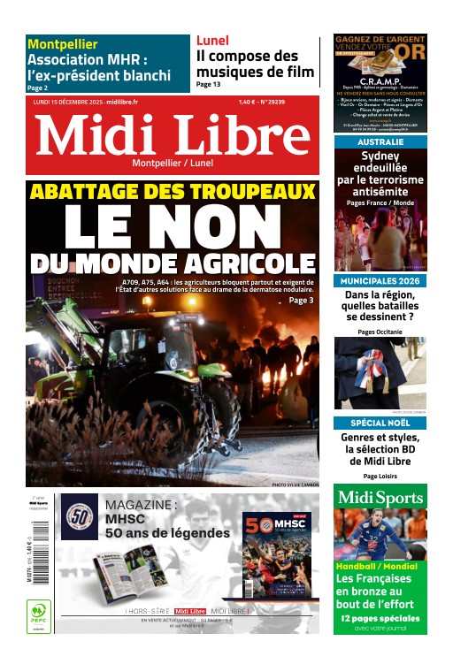 Titre: Midi Libre (14 éditions) du Lundi 15 Décembre 2025