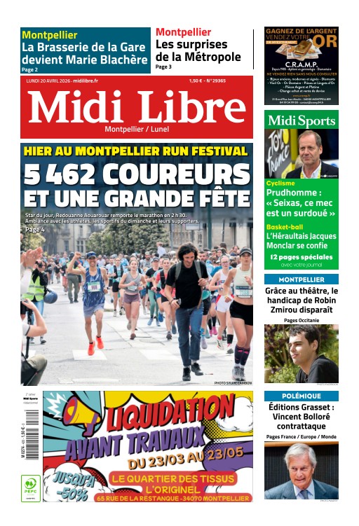 Titre: Midi Libre (14 éditions) du Lundi 20 Avril 2026