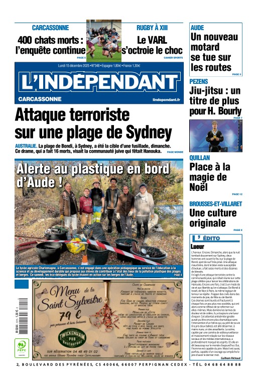 Titre: L'Indépendant (3 éditions) du Lundi 15 Décembre 2025