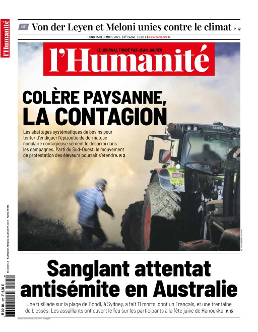 Titre: L'Humanité du Lundi 15 Décembre 2025