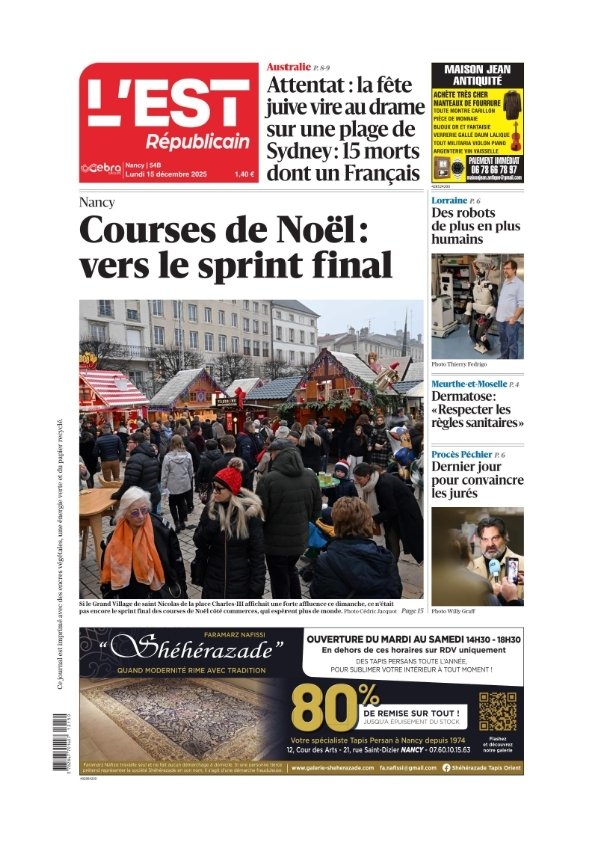 Titre: L'Est Républicain ( 2 éditions ) Du Lundi 15 Décembre 2025