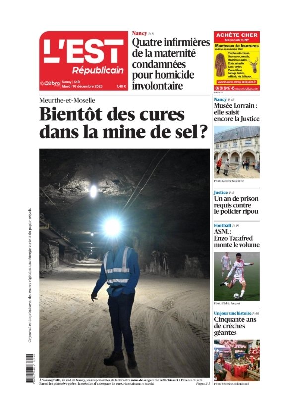 Titre: L'Est Républicain ( 2 éditions ) Du Mardi 16 Décembre 2025