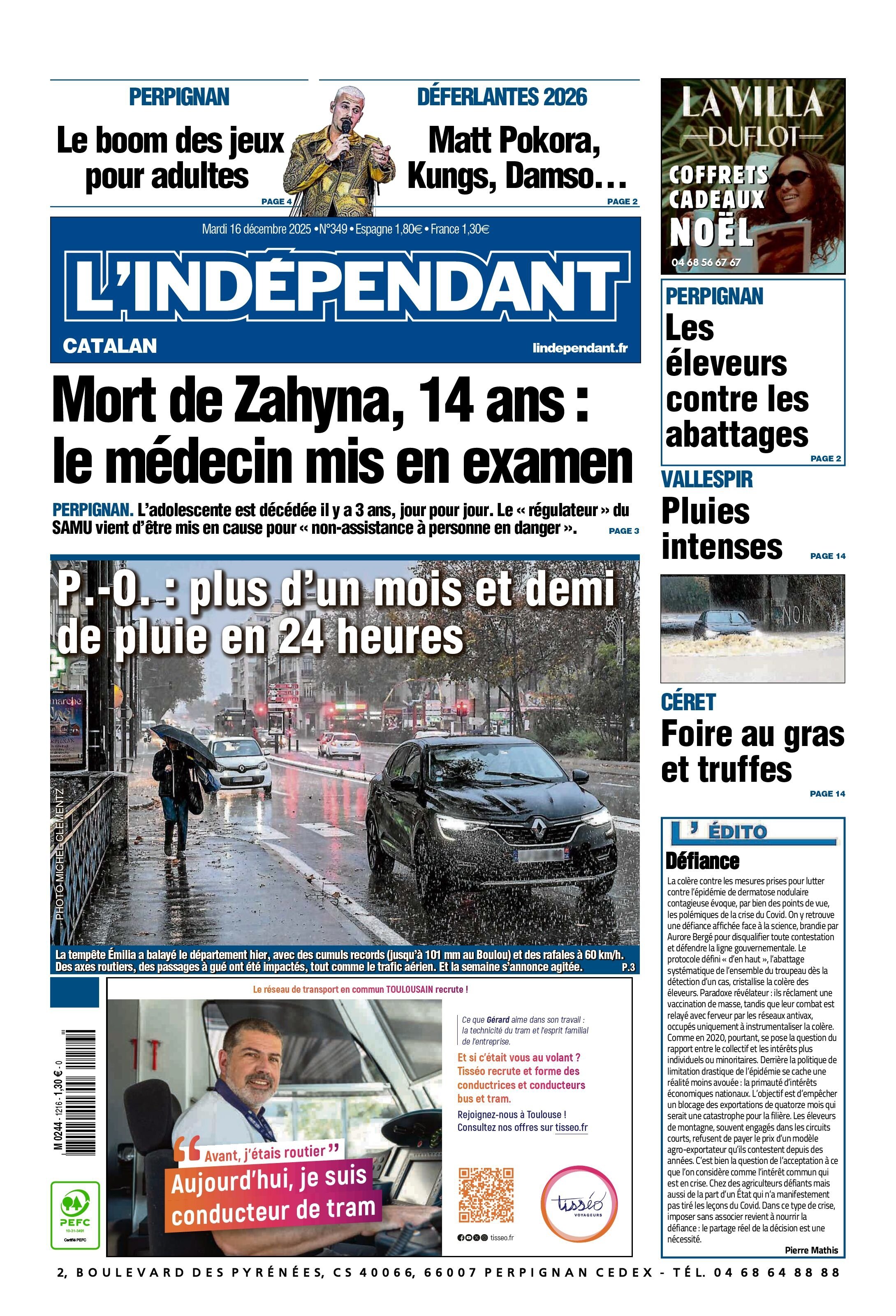 Titre: L'Indépendant ( 3 éditions ) Du Mardi 16 Décembre 2025
