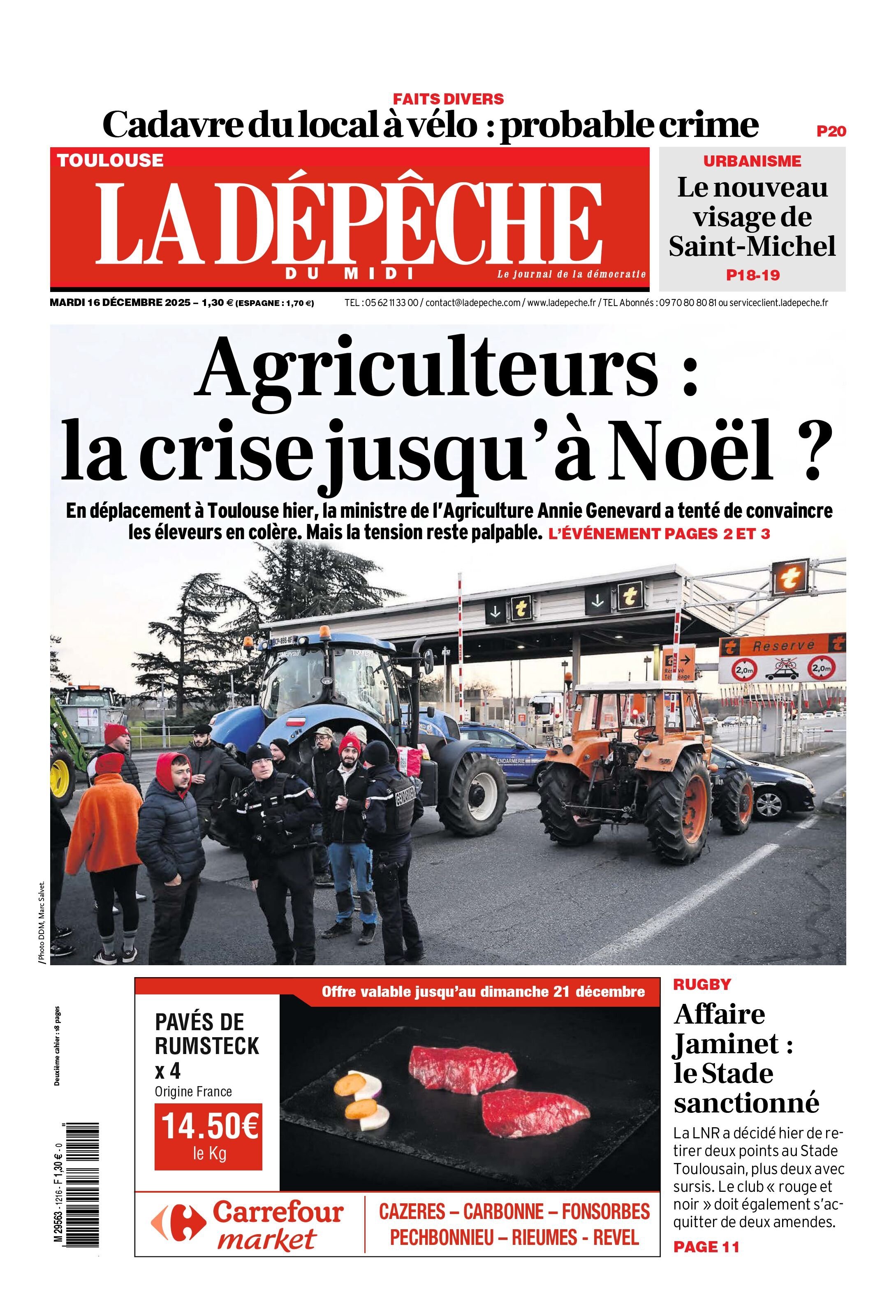 Titre: La Dépêche du Midi ( 16 éditions ) Du Mardi 16 Décembre 2025