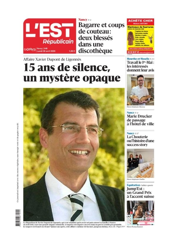 Titre: L'Est Républicain ( 2 éditions ) Du Lundi 20 Avril 2026